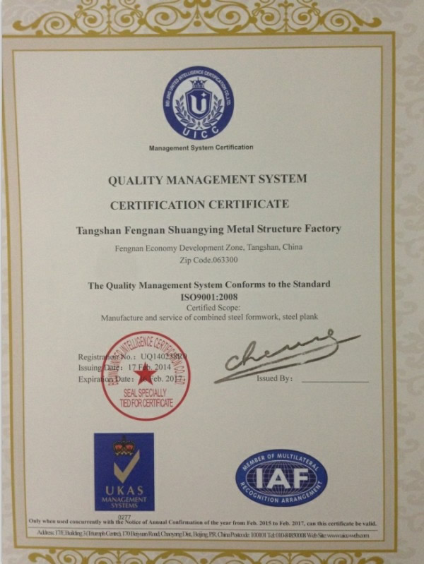 唐山創贏模板有限公司(原唐山豐南雙贏金屬結構廠)始建于一九九七年,是具規模實力的組合模板生產企業。公司技術力量雄厚,質量管理體系完善,與中鐵,中建,中交,中電,中水,中石油,中石化,河南水利工程局等大型施工企業有長期合作關系,產品覆蓋各省市自治區并出口新加坡,馬來西亞,委內瑞拉,印度,保加利亞等國,深受國內外客戶的一致好評。